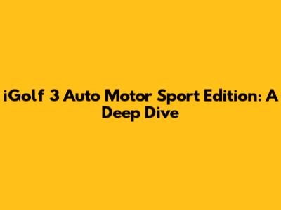 What Makes the iGolf 3 Auto Motor Sport Edition Stand Out?