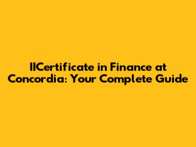 IICertificate In Finance At Concordia: Your Complete Guide