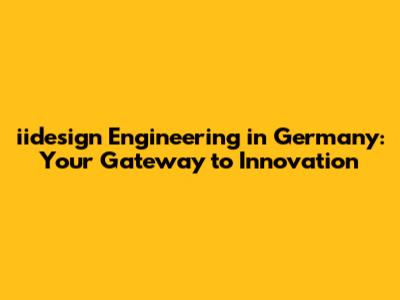 Iidesign Engineering In Germany: Your Gateway To Innovation