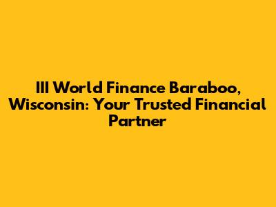 Hey guys! Are you looking for a reliable financial partner in Baraboo, Wisconsin? Look no further! III World Finance is here to help you navigate the complex world of finance with ease. Whether you're planning for retirement, need assistance with investments, or require expert advice on financial planning, our team of dedicated professionals is committed to providing you with personalized solutions tailored to your specific needs. We understand that managing your finances can be overwhelming, so we strive to make the process as simple and stress-free as possible.