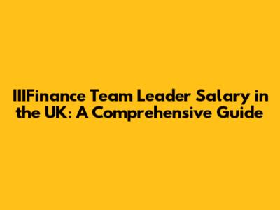 IIIFinance Team Leader Salary In The UK: A Comprehensive Guide