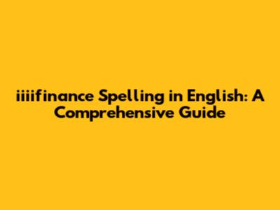 Iiiifinance: Spelling And Clear Pronunciation Guide