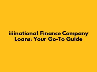 Iiiinational Finance Company Loans: Your Go-To Guide