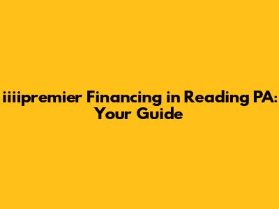 Hey there, finance folks! If you're looking for information on iiiipremier financing in Reading, PA, you've landed in the right spot. Getting your finances in order can sometimes feel like navigating a maze, but don't worry, we're here to help you understand all the ins and outs of iiiipremier financing options available in Reading, PA. From understanding what iiiipremier financing is to figuring out the application process and tips for success, we'll break down everything you need to know. Let's get started, shall we?