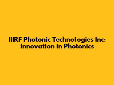 IIIRF Photonic Technologies Inc: Innovation In Photonics