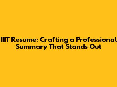 IIIT Resume: Crafting A Professional Summary That Stands Out