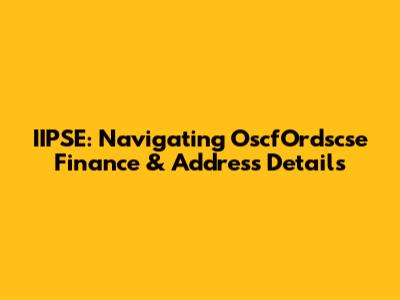 IIPSE: Navigating OscfOrdscse Finance & Address Details