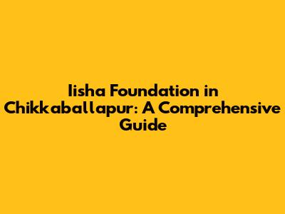 Iisha Foundation In Chikkaballapur: A Comprehensive Guide