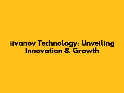 Iivanov Technology: Unveiling Innovation & Growth