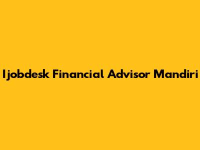 Ijobdesk Financial Advisor Mandiri: Career & Insights