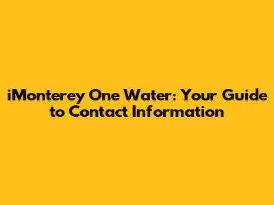 Are you trying to get in touch with iMonterey One Water? Knowing how to reach them is essential, whether you have questions about your bill, need to report a water issue, or are looking for general information. This article provides you with all the necessary contact details, ensuring you can quickly and efficiently connect with the right department at iMonterey One Water. We'll cover phone numbers, email addresses, physical addresses, and even some helpful tips for getting your queries resolved as smoothly as possible. Let's dive in and make sure you have all the information you need at your fingertips!