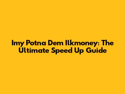 Imy Potna Dem Ilkmoney: The Ultimate Speed Up Guide