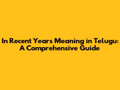 In Recent Years Meaning In Telugu: A Comprehensive Guide