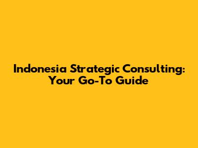 Indonesia Strategic Consulting: Your Go-To Guide