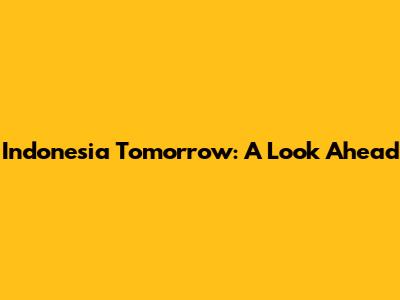 Indonesia Tomorrow: A Look Ahead
