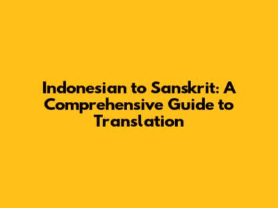 Indonesian To Sanskrit: A Comprehensive Guide To Translation