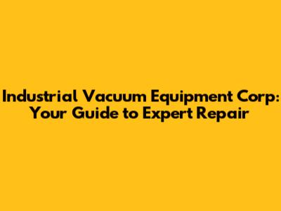 Industrial Vacuum Equipment Corp: Your Guide To Expert Repair