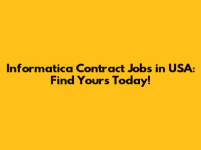 Informatica Contract Jobs In USA: Find Yours Today!