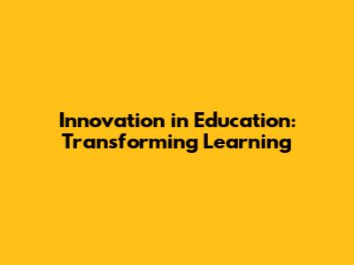Innovation In Education: Transforming Learning