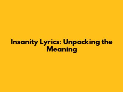 Insanity Lyrics: Unpacking The Meaning