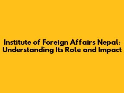 Institute Of Foreign Affairs Nepal: Role And Impact