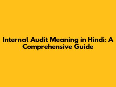 Internal Audit Meaning In Hindi: A Comprehensive Guide
