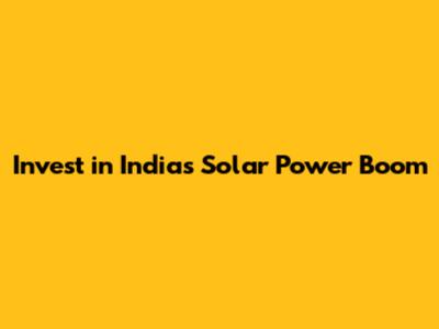 Invest In India's Solar Power Boom