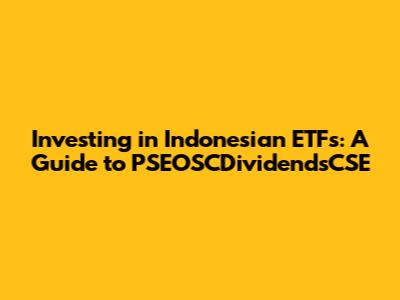 Hey guys! Ever thought about diving into the Indonesian stock market but felt a bit overwhelmed? Well, you're not alone! Investing in a foreign market can seem daunting, but it doesn't have to be. One way to dip your toes in without getting completely soaked is through Exchange Traded Funds, or ETFs. And today, we're going to break down one interesting option: the PSEOSCDividendsCSE ETF in Indonesia. So, grab a cup of coffee (or teh tarik, if you’re feeling Indonesian!), and let's get started!