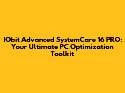 IObit Advanced SystemCare 16 PRO: Boost, Optimize, And Secure Your PC