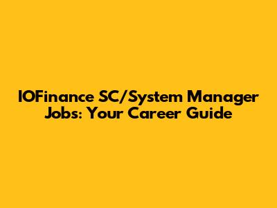IOFinance SC/System Manager Jobs: Your Career Guide