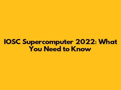 IOSC Supercomputer 2022: What You Need To Know