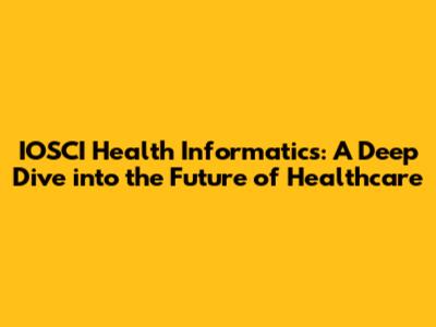 IOSCI Health Informatics: Your Guide To A Healthier Future