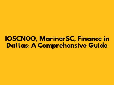 IOSCN0O, MarinerSC, Finance In Dallas: A Comprehensive Guide
