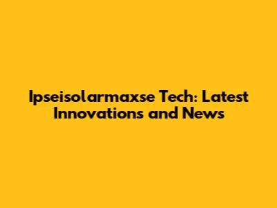 Ipseisolarmaxse Tech: Latest Innovations And News