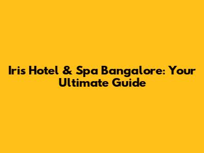 Iris Hotel & Spa Bangalore: Your Detailed Guide