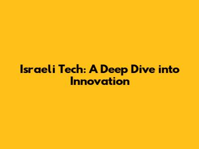 Israeli Tech: A Deep Dive Into Innovation