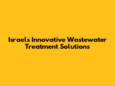 Israel's Innovative Wastewater Treatment Solutions