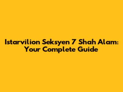 Istarvilion Seksyen 7 Shah Alam: Your Complete Guide