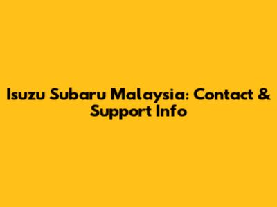 Isuzu Subaru Malaysia: Contact & Support Info
