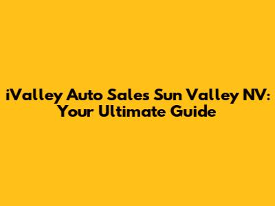 Hey there, car shoppers! If you're on the hunt for a reliable vehicle in the Sun Valley, NV, area, you've probably heard the name iValley Auto Sales. But maybe you're wondering, what's the buzz about this place? Well, you've come to the right spot! We're diving deep into everything iValley Auto Sales has to offer, from their inventory to their customer service, and everything in between. So, buckle up, and let's explore why iValley Auto Sales could be your next car-buying destination.