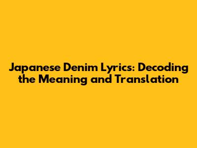 Unveiling the Enigmatic Lyrics of Japanese Denim