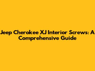 Jeep Cherokee XJ Interior Screws: A Comprehensive Guide