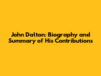 John Dalton: Biography And Summary Of His Contributions