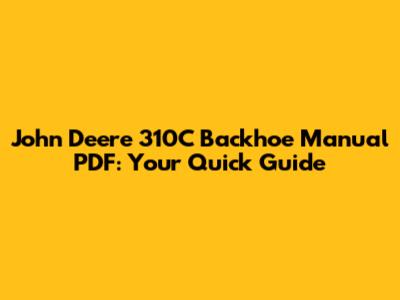 John Deere 310C Backhoe Manual PDF: Your Quick Guide
