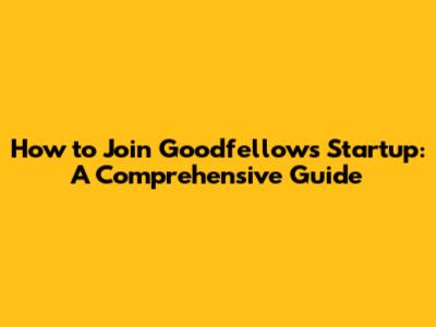 Join Goodfellows Startup: A Comprehensive Guide