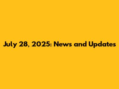 July 28, 2025: News And Updates
