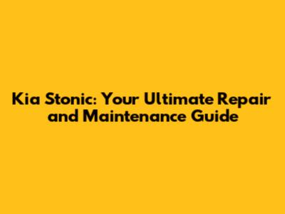 Kia Stonic: Comprehensive Repair & Maintenance Guide