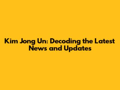 Kim Jong Un: News, Updates, And What You Need To Know