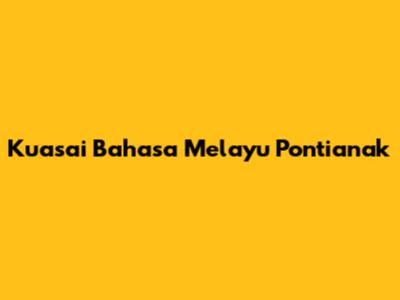 Kuasai Bahasa Melayu Pontianak