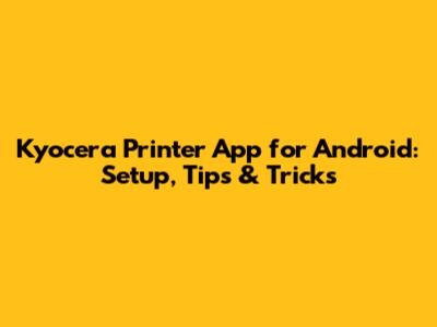 Kyocera Printer App For Android: Setup, Tips & Tricks
